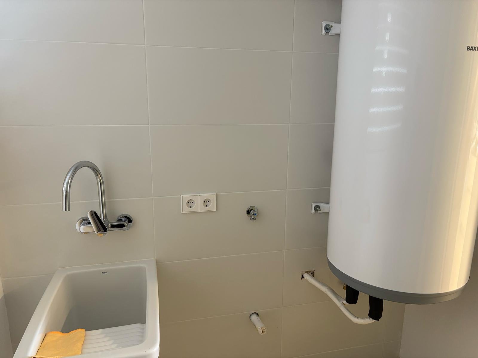 Die modernen Einbauküchen sind vollständig ausgestattet – inklusive Edelstahlgeräten wie Backofen, Kochfeld, Geschirrspüler, Kühlschrank sowie Abzugshaube. In den Badezimmern kommen Markenprodukte von Roca mit großzügigen Duschflächen, eleganten Glasabtrennungen und verchromten Armaturen zum Einsatz.