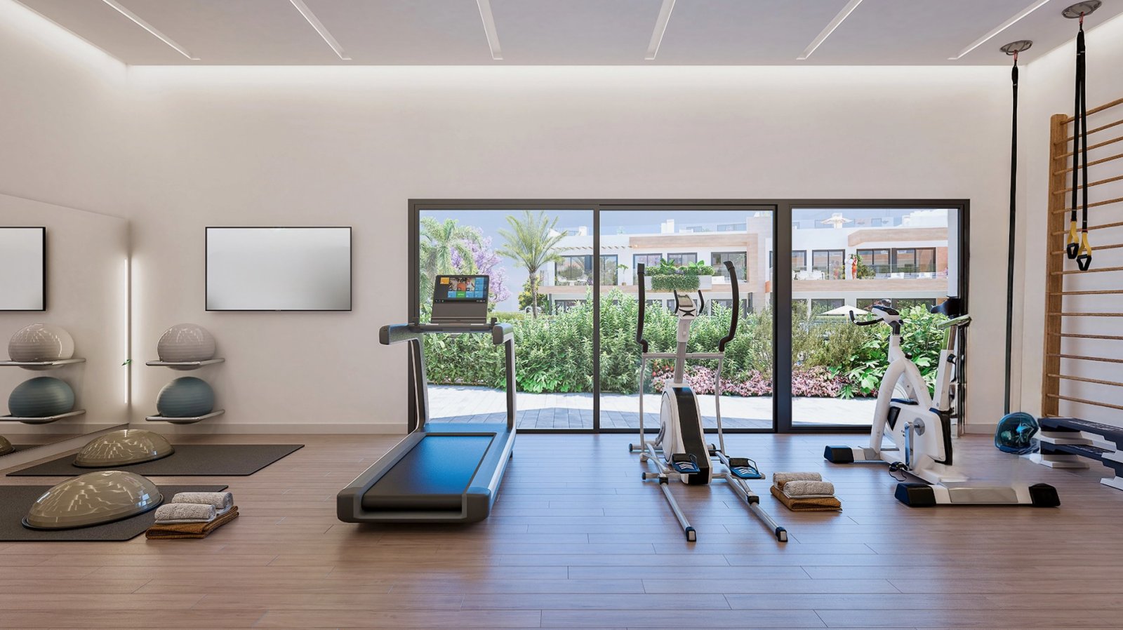 Das Apartment Atalaya Emotion bietet 2 Schlafzimmer, 2 Bäder, einen offenen Wohn- und Essbereich, eine moderne Einbauküche mit hochwertigen Geräten sowie bodentiefe Fenster, die den Innenraum mit dem 81 m² großen Privatgarten verbinden. Zur Anlage gehören Pool, Kinderbecken, Whirlpools, Fitnessraum, Yoga- und Boccia-Zone sowie ein Kinderspielplatz. Tiefgaragenstellplatz und Abstellraum inklusive.